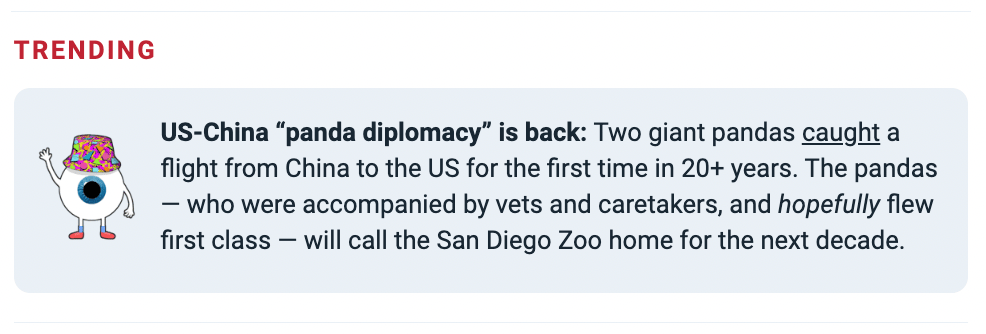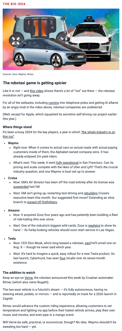 Veja como o The Hustle transmitiu a notícia com uma linguagem leve e divertida e em poucas palavras, adicionando o link para quem quiser aprofundar.